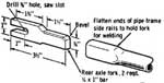 The rear forks are made from 1/4" x 1" flat stock, as in fig. 4. The frame tubing should be pounded flat, and these inserted deep inside, then welded.