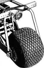 The defining feature of this design is the enormous rear wheel. The 12-by-16 ATV type has no tube and is kept at only 12 lbs. pressure. At such low pressure, the tire can cups itself around small boulders and logs in the path, smoothing your ride. Also, with the design's 8" ground clearance, you won't get stopped by small obstructions nearly as often.