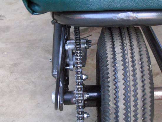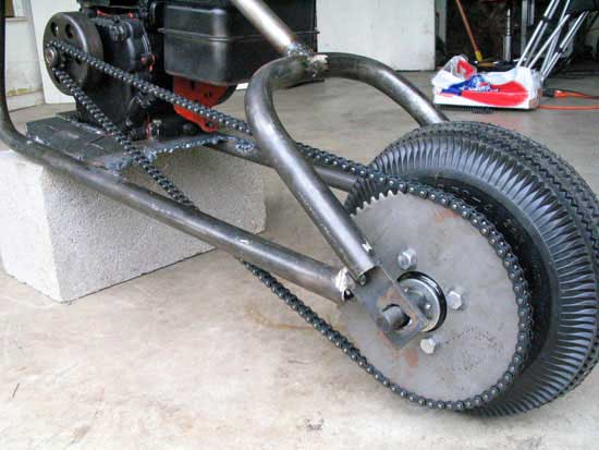 Our clutch is an 11 tooth Max-Torque centrifugal clutch. The #35 chain was very long (Fig. 1), and we've since added a chain guard to protect the rider if there is a breakage.