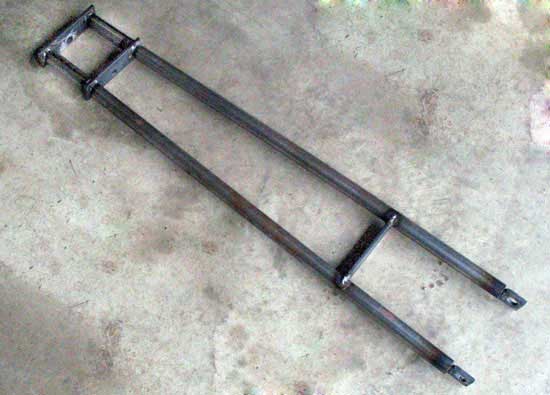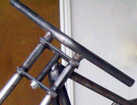 The two long tubes were then added to the top portion. (Fig. 3). A cross support was added near the bottom, high enough to clear the intended tire.