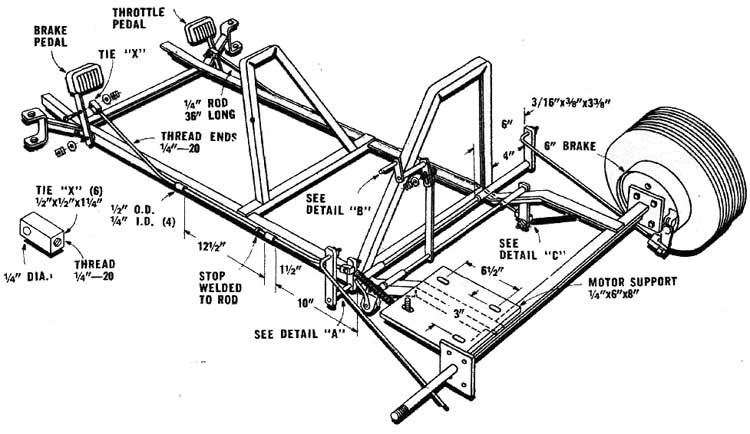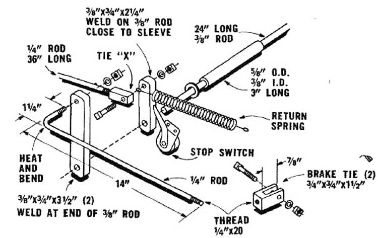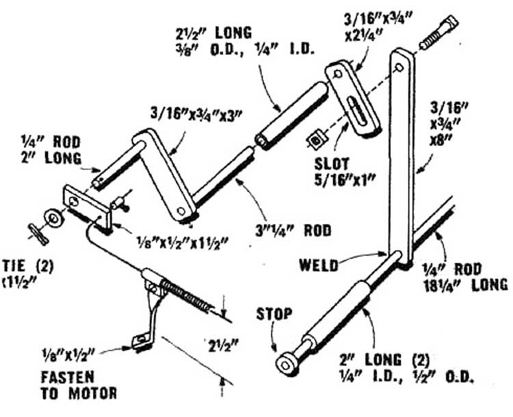 Pedals may be purchased from parts houses, or fabricated yourself. We elected to make our own (figs. 3-4). This was accomplished by welding 3/4" x 1/8" flat stock to 1.5" x 1/8" stock.