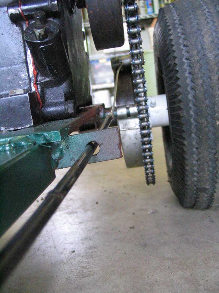 We used a sheathed cable for our brake cable. You may also use a brake rod similar to the throttle rod we used for the throttle, (below). Cables will often rust over time, but are easier to route through the kart.