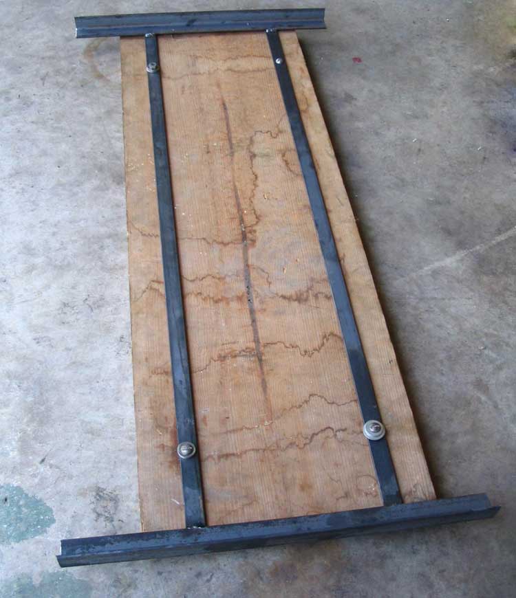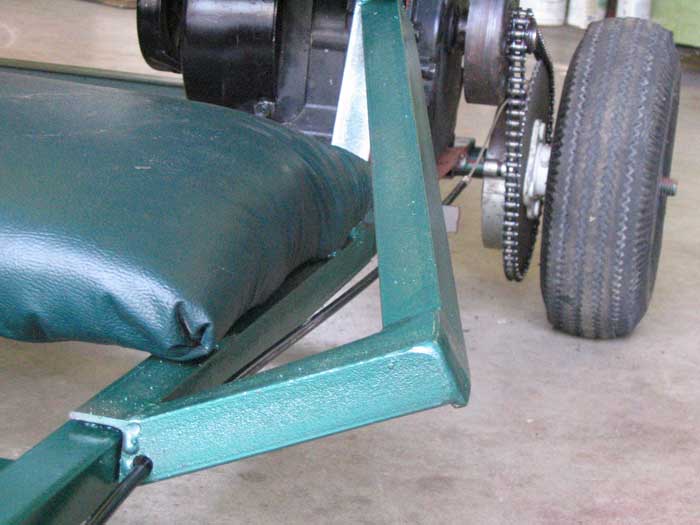 You'll note that this design doesn't use any rollers. When adjusted carelessly this may tear the paint up, so we unbolt it, pick it up, and set it down at the other adjustment. We've used a really tough "grippy" paint on it, too, and that's helped.