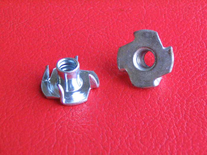 Special nuts make seat attaching easier. They are made to be pounded into wood, and then used with normal bolts. This allows you to attach the seat without cutting into the upholstery on the front side. See fig. 5.