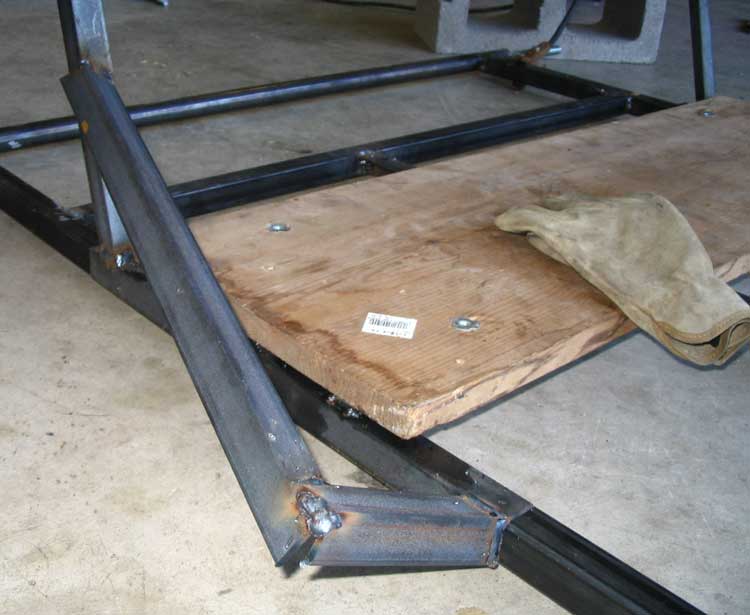 The seat angles back at 15 degrees. The side rails were made from angle, which was filled in and ground at the corner shown (Fig. 3).