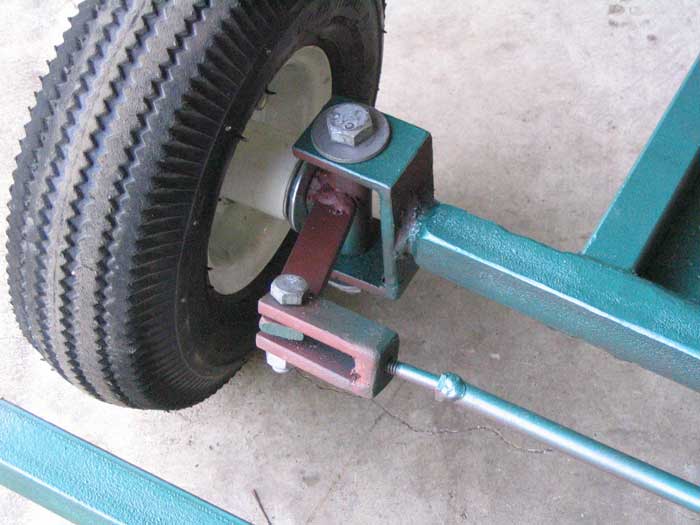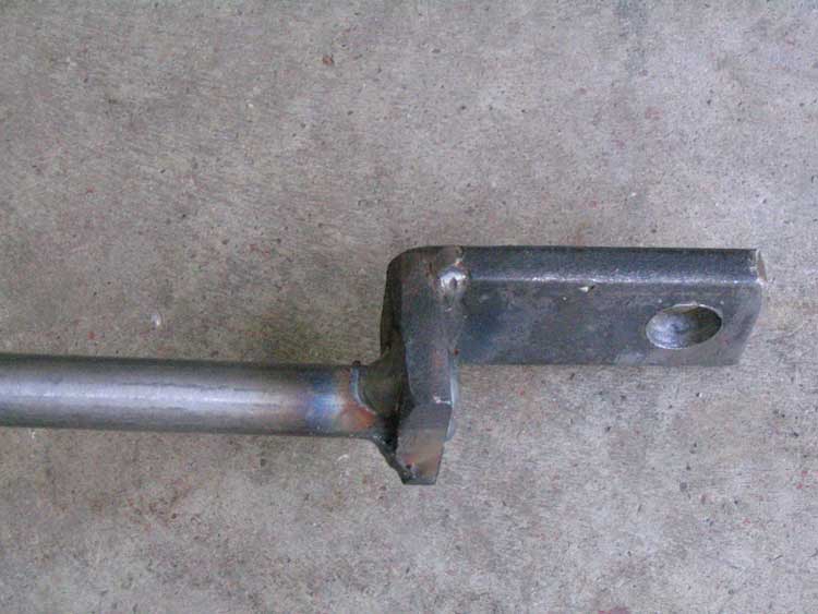 Fig. 2 shows where the steering rod terminates into the Pitman arm. Our arm was made from 1.5"x1/4" stock, but we found that 3/4"x1/4" would have been more appropriate.