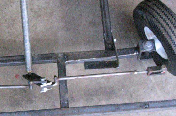 The tie rods that connect in the diagram are also 3/8" rod, with 3/4"x1/4" flat stock used to make the ends. A galvanized bolt holts the entire assembly together.
